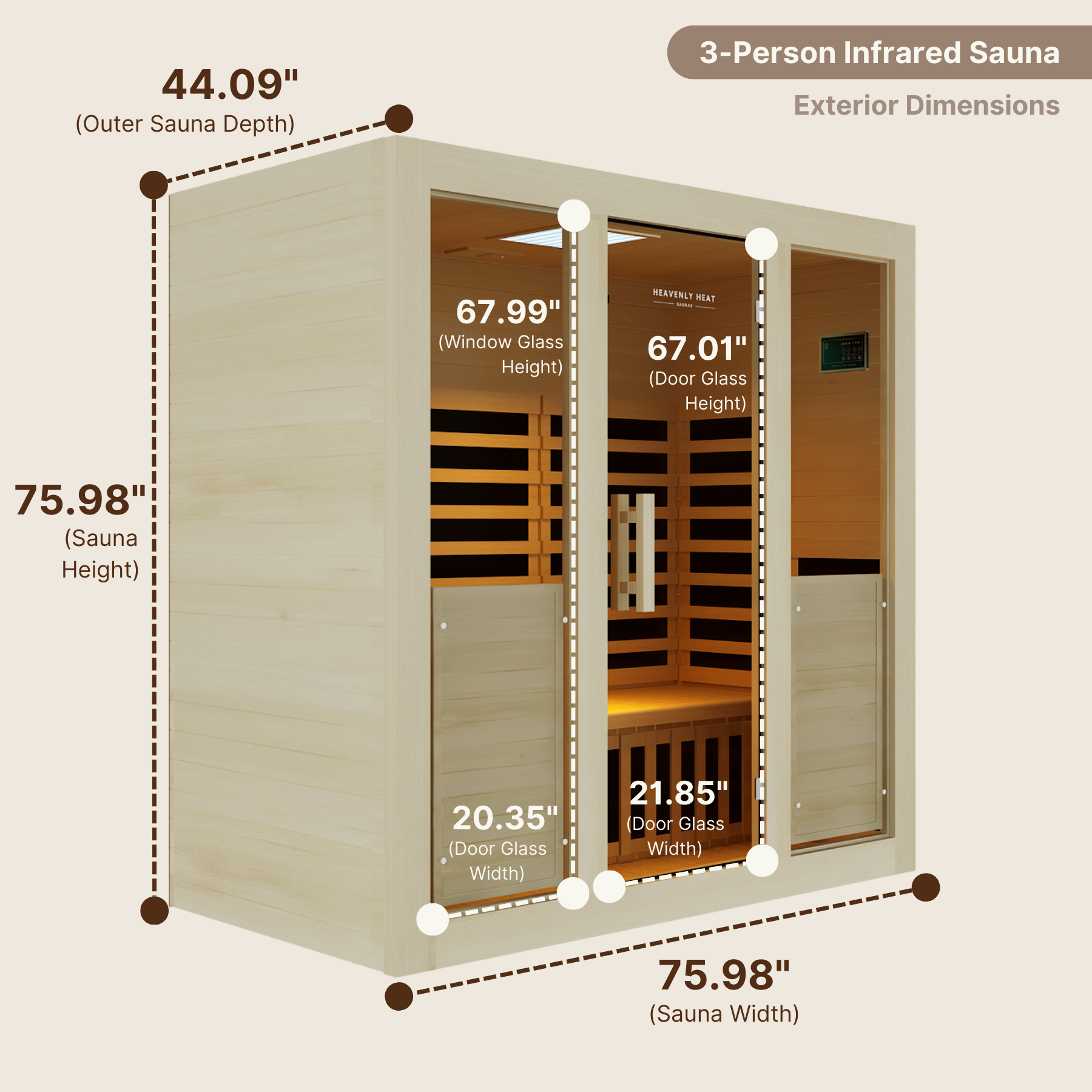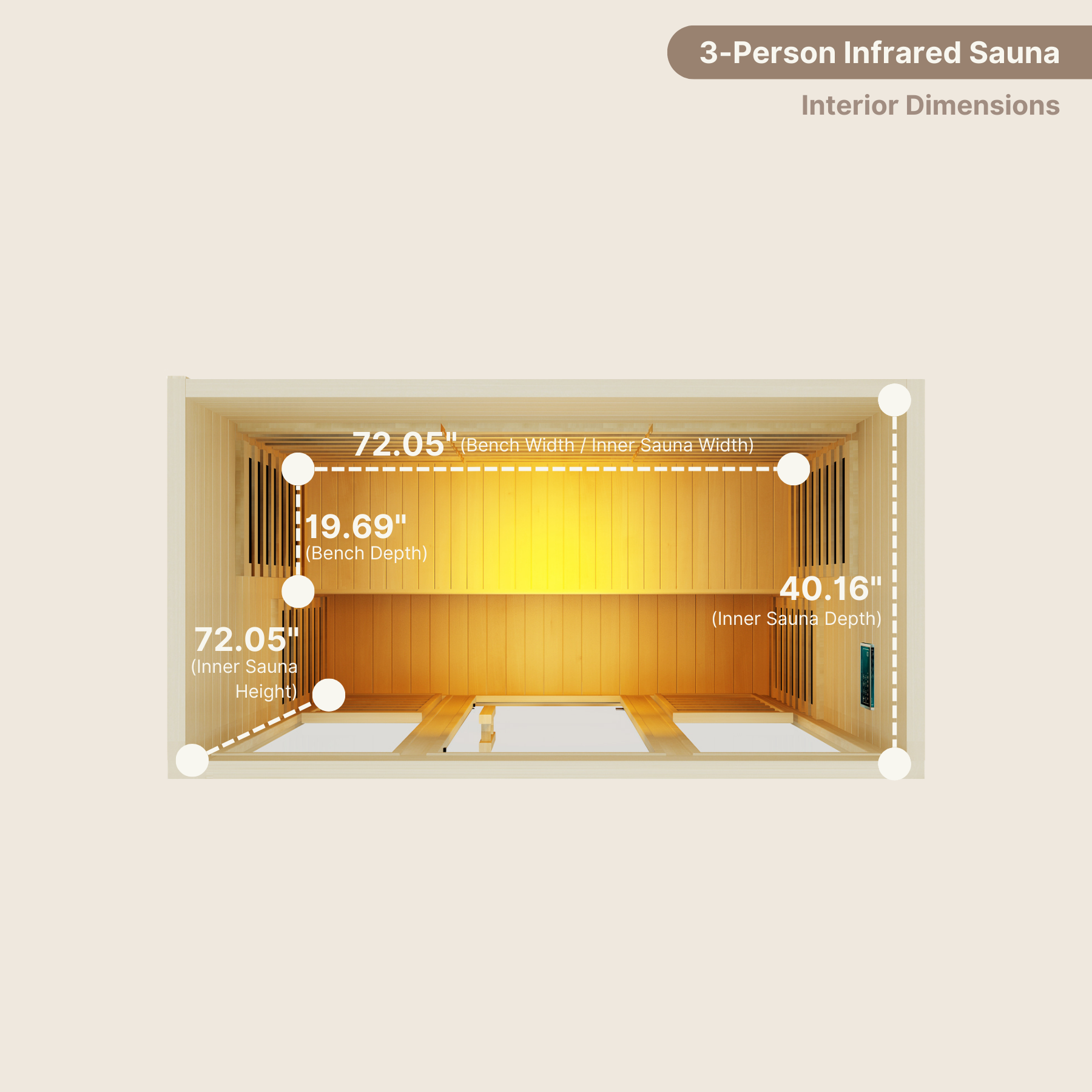 You asked and we listened. Expansive luxury meets elevated performance with our premium 3-person sauna, delivering a whopping 3,145 watts of pure infrared power across strategically positioned carbon panels. With nearly 76 inches of width and depth, this spacious sanctuary offers room to stretch, breathe, and heal, whether you're solo or sharing the experience. Built for serious wellness enthusiasts who demand more space and power without compromising absolute purity.