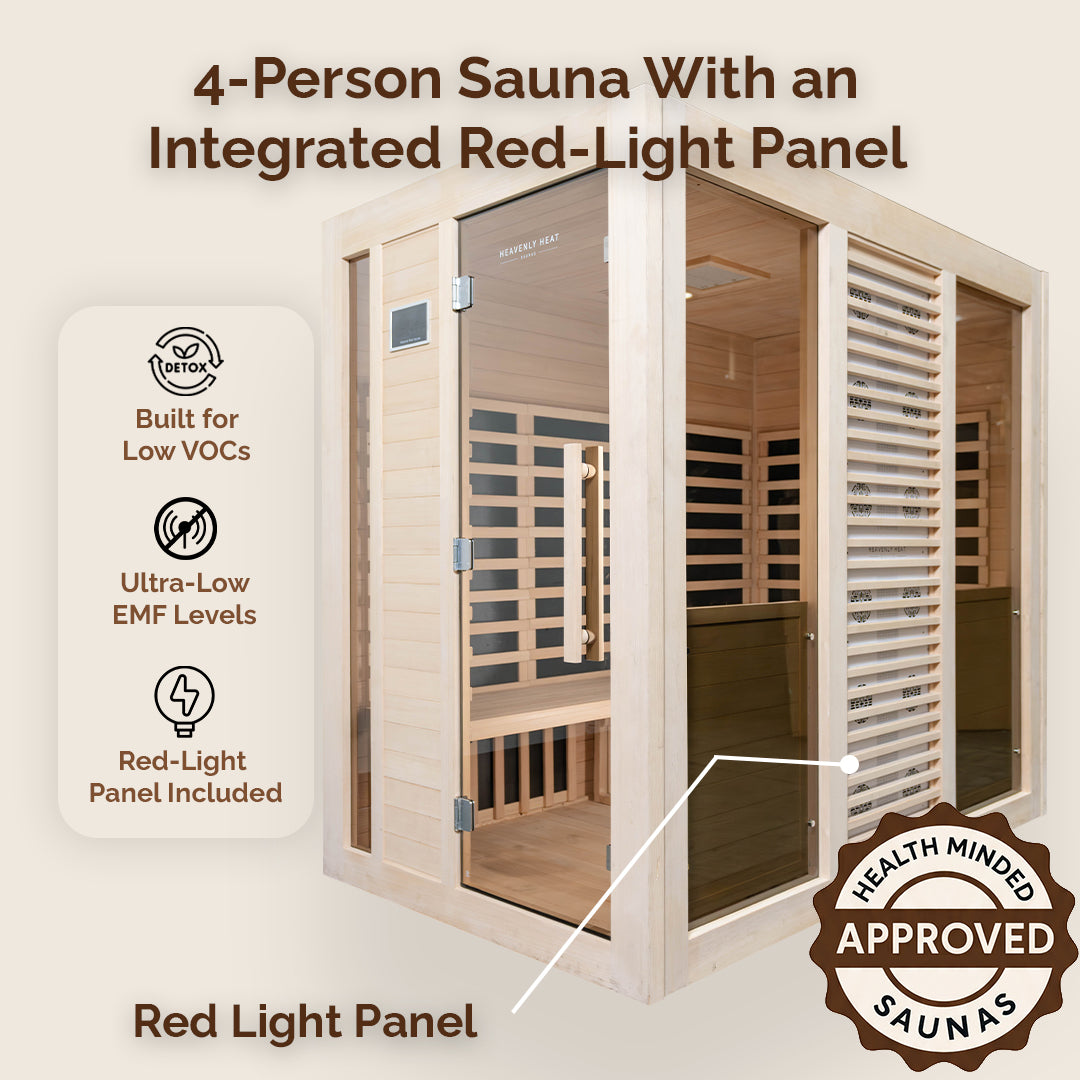The pinnacle of home wellness technology. This ultimate sanctuary combines our most powerful grounded infrared system with a massive and powerful red light therapy panel featuring 1,330 bulbs. Bar none, the largest & most powerful integrated red light array in any home sauna that we are aware of, all while maintaining ultra-low EMF & ELF standards and built for low VOCs. Designed for the most discerning wellness enthusiasts, elite athletes, and those building world-class home recovery spaces. This is where cellular regeneration, deep detoxification, and luxury converge.