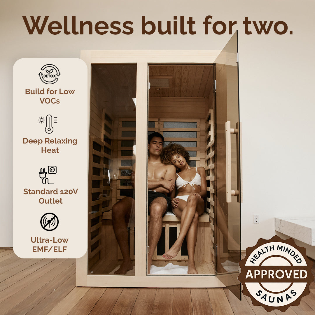 Experience our most popular design, ideal for couples pursuing shared wellness rituals or solo users seeking luxurious space to decompress. This versatile two person sauna supports natural detoxification pathways and deep relaxation, adapting to your lifestyle. Create meaningful wellness moments together or indulge in spacious comfort on your own.
